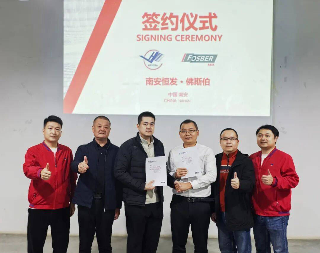 佛斯伯亚洲取南安市恒发纸品包拆无限公司成功签订合做和谈,正式引进佛斯伯亚洲最新推出的S/LINE350-3350幅宽五层单刀单堆高端智能瓦楞纸板出产线。恒发纸品总司理陈恒昌取佛斯伯亚洲总司理赵庆军代表两边完成签约,配合正在纸品包拆智能制制范畴的深度合做新阶段。
